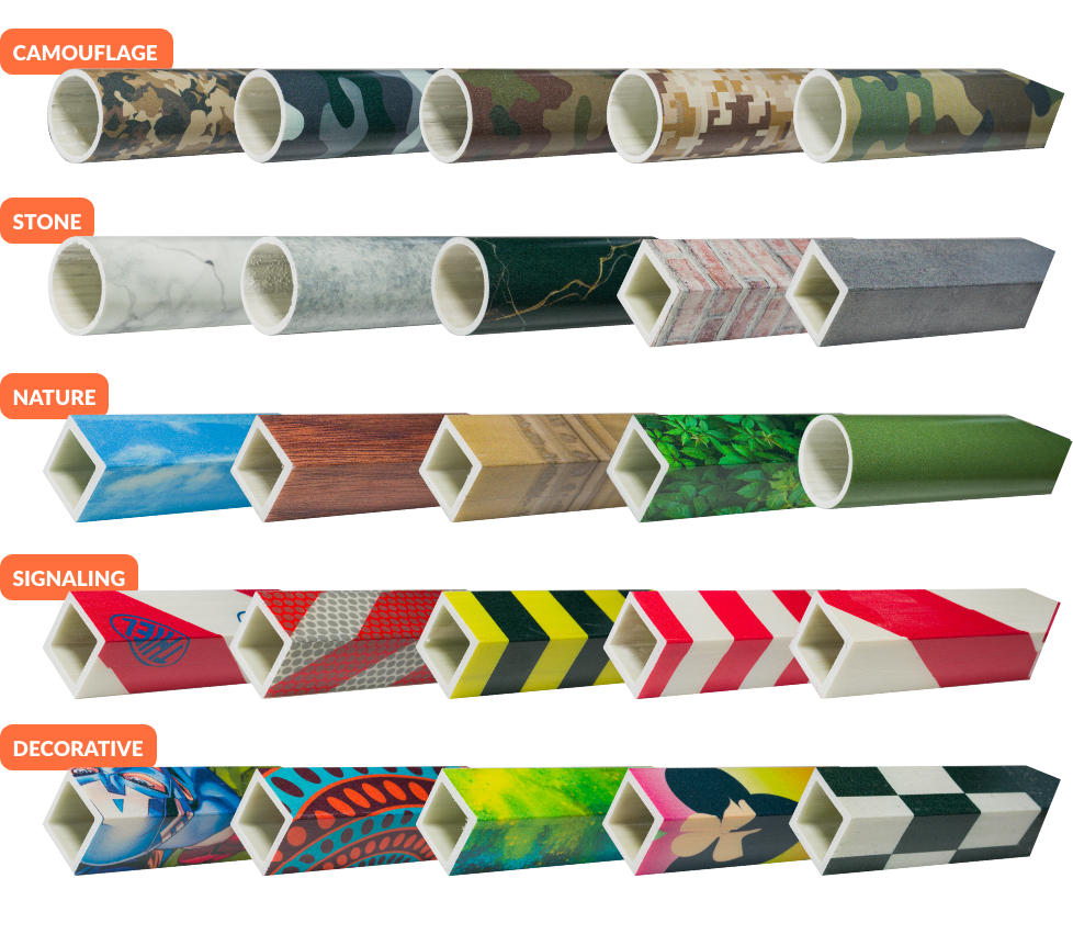 Our composite profiles can be customised with print, pigment or fleece to suit any application. From bright colours for visibility to natural looks for seamless integration. Applied during production, the finish is durable and long-lasting.